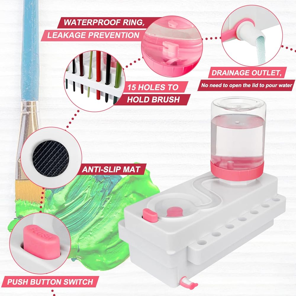 【Running Water Cycle Paint brush Rinser】Only pressing a button,you can replace dirty water with clean water,Allows you to focus more on drawing.Brush saver for cleanliness painters!