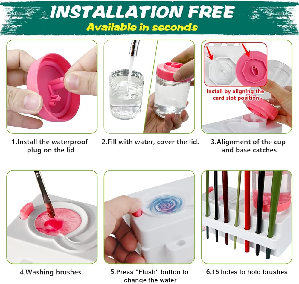 【Less Water Consumption】The brush cleaner only requires a small amount of water to clean the brush,effectively saving water.