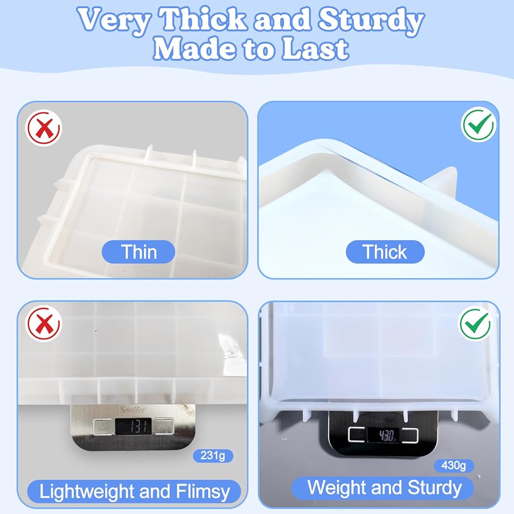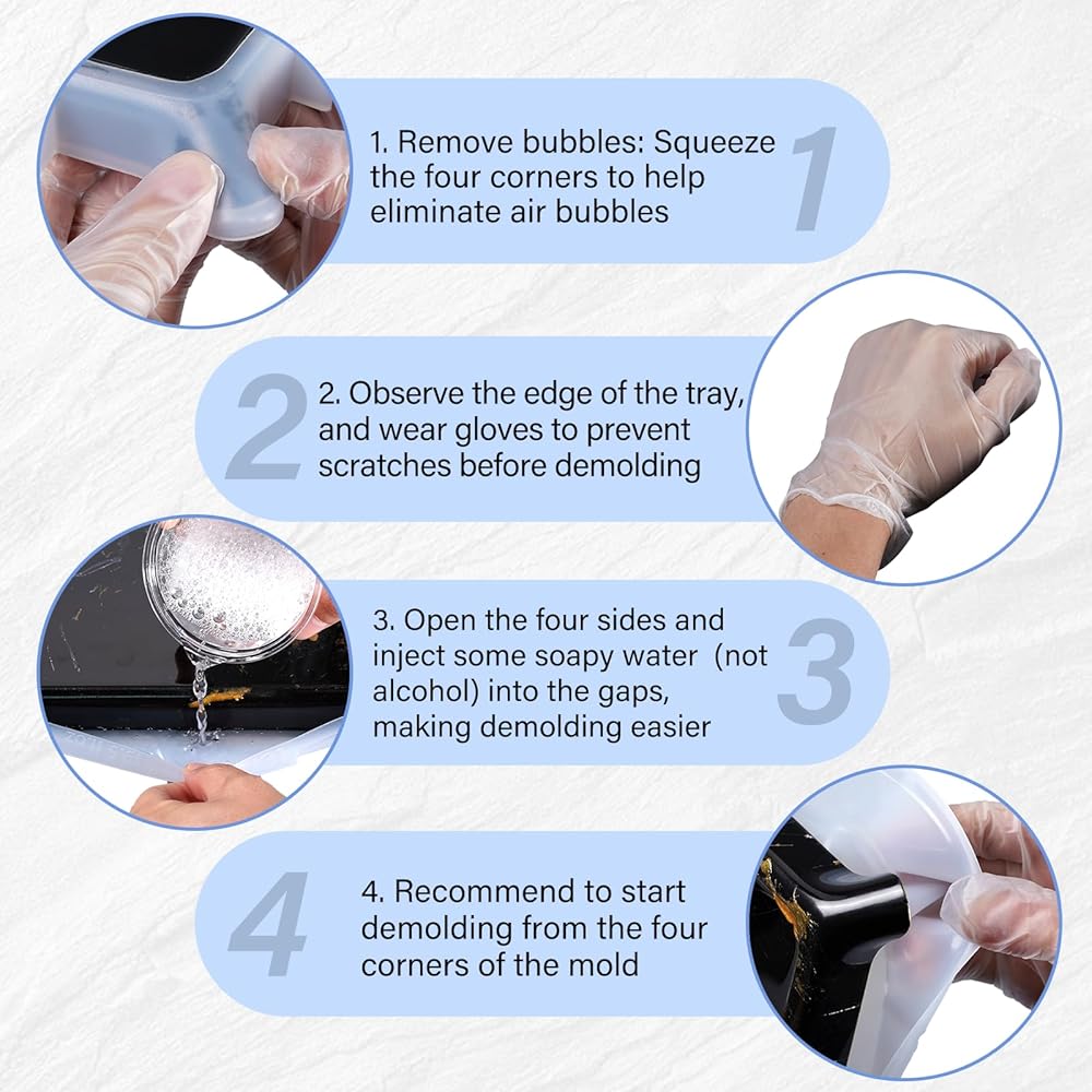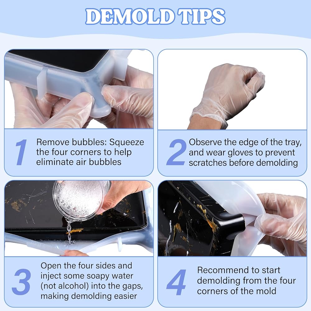 【Premium Quality Material】Our stylish tray molds are made from top-tier, durable silicone, resistant to tearing and deformation. They are reusable and easy to clean, with a smooth interior that eliminates the need for polishing. The non-stick surface and flexible silicone make demolding easier. Additionally, pinching the corners before demolding to remove bubbles and adding a release agent ensures a perfect finish.