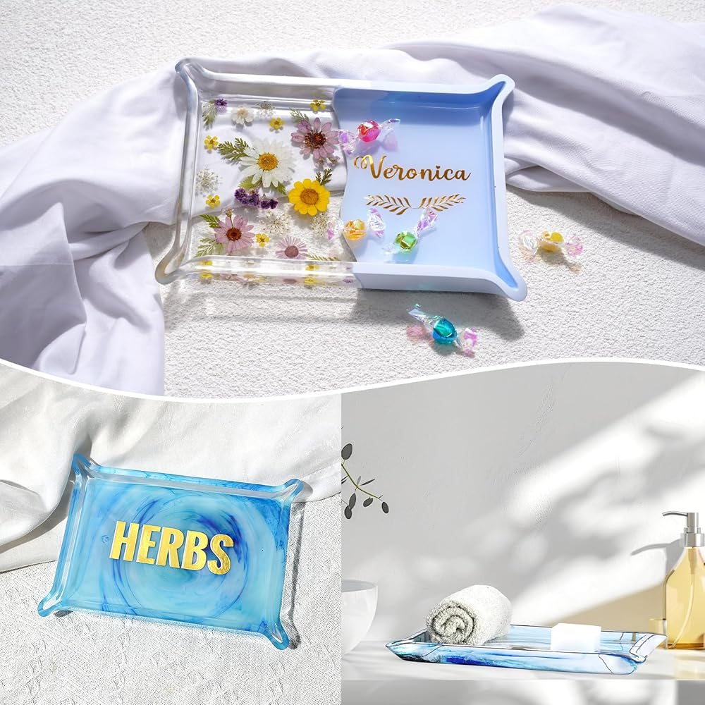 【Endless Possibilities】Unleash your creativity by adding various elements such as dried flowers, powders, dyes, stickers, names, patterns, and 3D decorations to create unique trays. This mold is compatible with different types of casting resins, including epoxy resin, polyurethane resin, gypsum, and 3 x UV resistance resin.