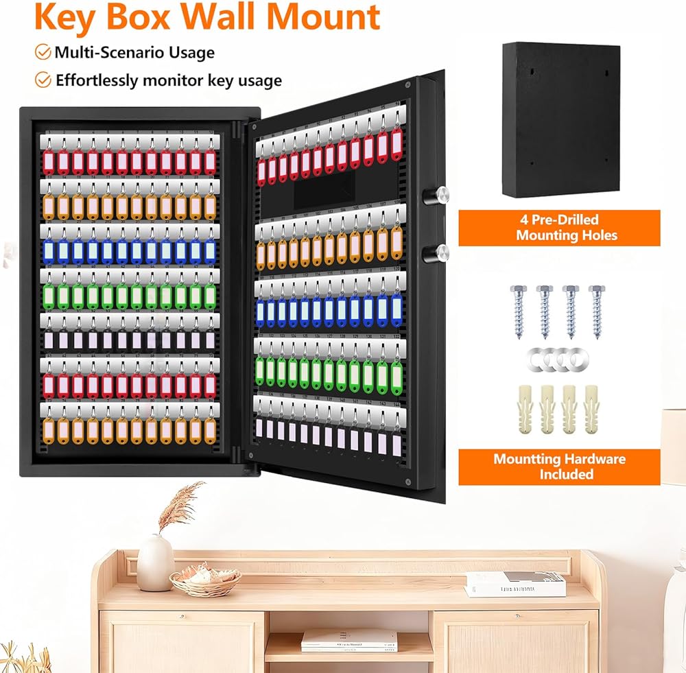 🔥🔥🔥【 LARGE KEY LOCK BOX WALL MOUNT】: Our 220 position key cabinet lock box is designed to be spacious, well-constructed, and convenient for securely storing your keys. The lock box comes with pre-drilled holes and mounting hardware, and can be easily mounted on the wall, improves safety and reliability.