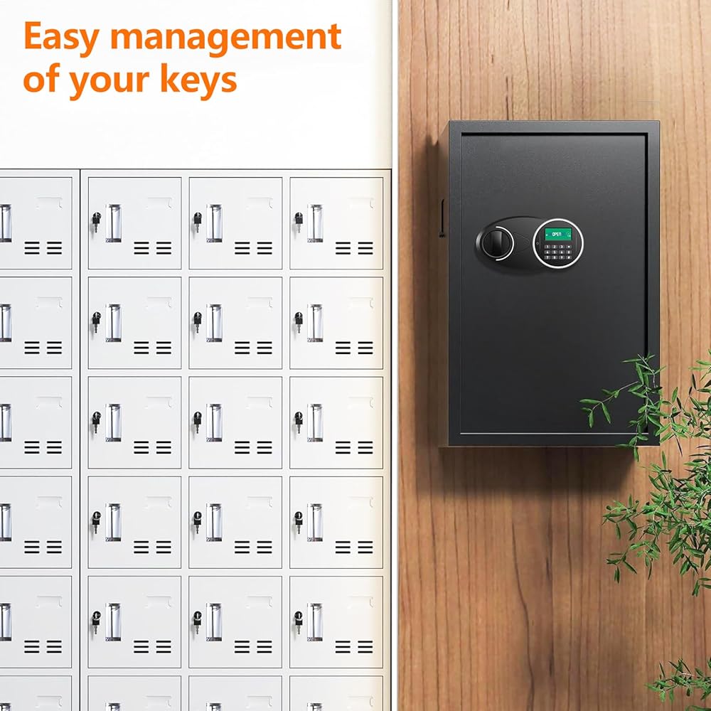 🔥🔥🔥【DURABLE CONSTRUCTION】: Made of durable heavy-gauge steel, with a powder-coated and scratch resistant black finish, the key organizer lock box will keep your keys safe and secure. The stable structure also features long-lasting use.