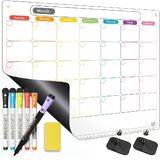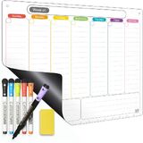 A FRIDGE CALENDAR WORKS FOR : -BUSY MOMS : To arrange household chores, track spending habits, plan ahead for bill-paying and grocery list, meal planner as menu board, create a family hub, organize interest and gym class, to-do list. Chore chart for kids multiple kids. -KIDS: Keep in track of school schedule, activities, behavior chart. To build good habits. -BUSY WORKING: Keep in track of appointments, dates, memo pad, or organization for company. -FORGETFUL PEOPLE: Helpful for keeping track of stuff by posting where will never miss KEY FACTS for a great Magnetic Calendar for Refrigerator: 1, Thickness of Magnet – very important!! Determines how strong the magnet will be. Thickened magnet keep refrigerator calendar always in place and avoid falling off from fridge. 2, Material of Surface – very important!! --Choose the one with PET surface to avoid stain or ghosting on dry erase calendar! 3, Markers: Have to be fine tip, which allow you to write more events in limited calendar whiteboard. 4, Packing: Flat packaging in box prevents the calendar being bent or damaged caused by roll packaging. WHY CHOOSE OURS ? *Extra-thick(0.8mm) magnet, thickest and strongest! *Premium PET surface, NO STAIN & GHOSTING *Comes with both Dry Erase Marker & Wet Erase Marker, with strong magnets on cap. *1-2mm fine point marker. *Packed flat in beautiful box, great gift. *Money Back Guarantee. NOTES BEFORE YOU PAY: Please test your fridge to make sure it is attractive to the magnet. Please measure your fridge to make sure the Calendar fits Package includes: 1 x Weekly Calendar, 5 x Dry Erase Marker, 1 x Wet Erase Marker, 1 x Eraser, 4 x Bookmark