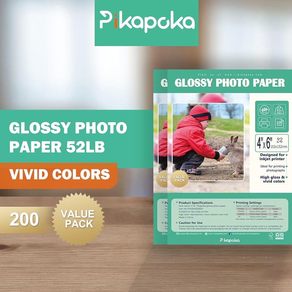 💖Pikapoka 4x6 glossy photo paper: Our mega-value pack of 200 sheets is perfect choice for unleashing your creativity.