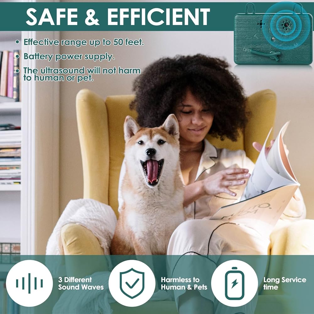 2. The outdoor no bark control emits an ultrasonic sound.(ultrasonic sound can be heard by dogs, but is silent to humans)