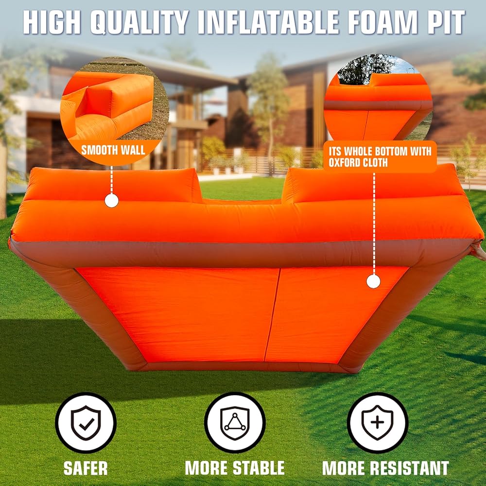 【HIGH STRENGTH MATERIAL】All High strength 210D Oxford material make its more sturdy, wear-resistant, and prolong the service life. High quality, reusable. Dive into the excitement with our inflatable fun foam ball pit! A spacious about 10x10 Ft, this ball pit offers endless entertainment for kids and adults alike.