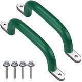 SELEWARE Set of 4 Safety Playground Handles, Metal Grab Bars with Finger Indentations for Kids Swing Set, Playset, Climbing Frame, Play House Handles, 400lbs Capacity, Green