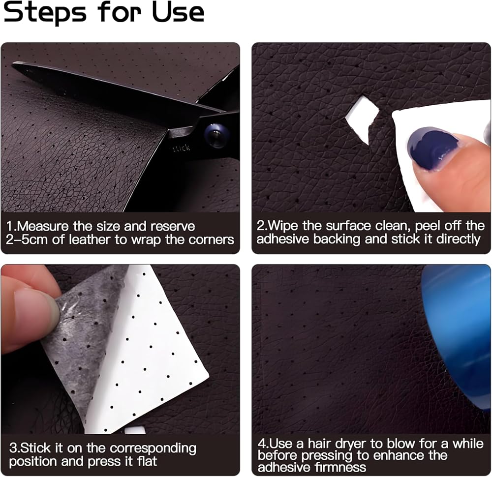 Easy to use:Self adhesive leather repair patches are easy to use, just select the area to be repaired, clean it up, cut the leather repair patch and peel off the leather repair tape and stick it on the damaged area