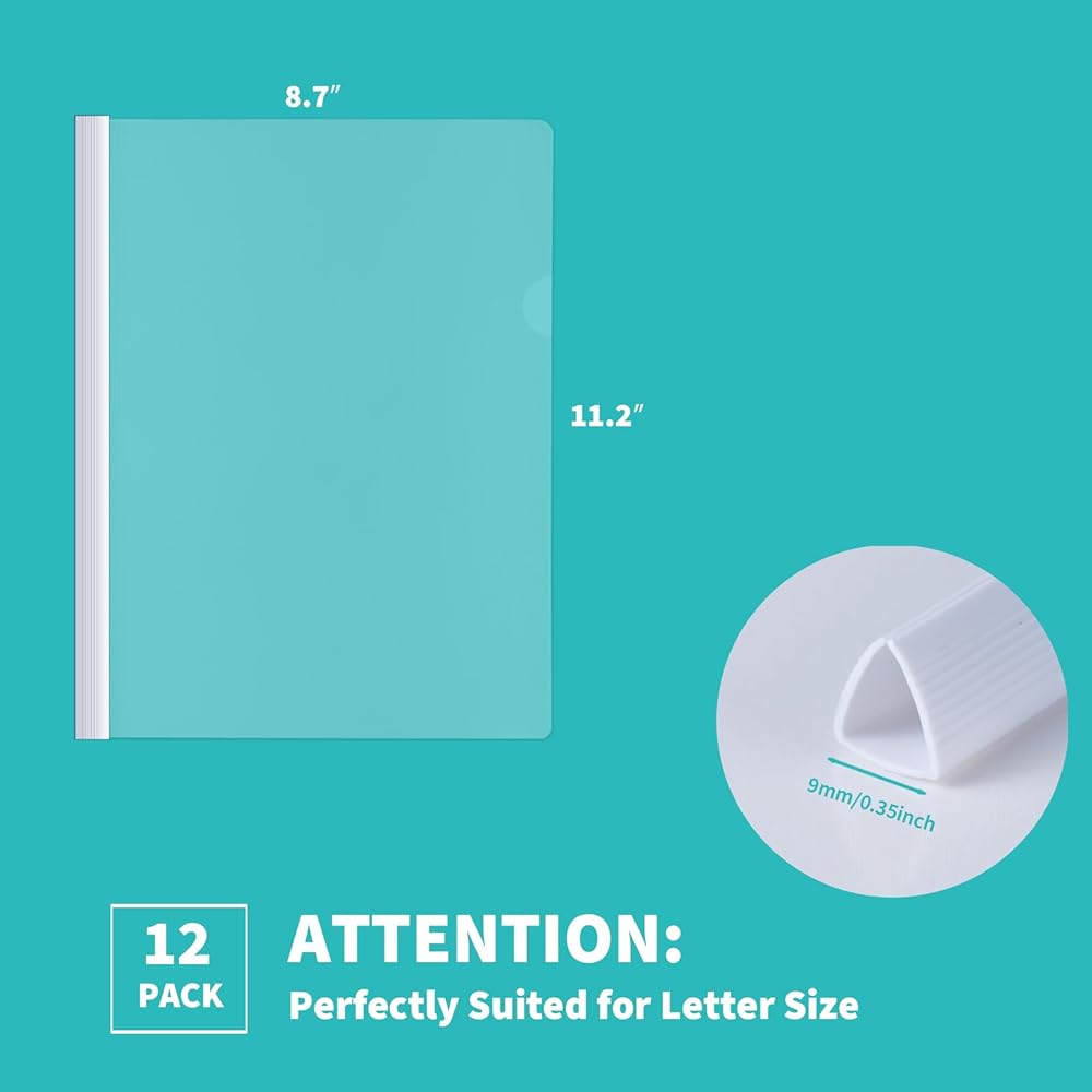 【12 Pack】There are 12 pieces of clear report covers and 12 white sliding bars in the package, help you to collect and classify different documents more orderly.