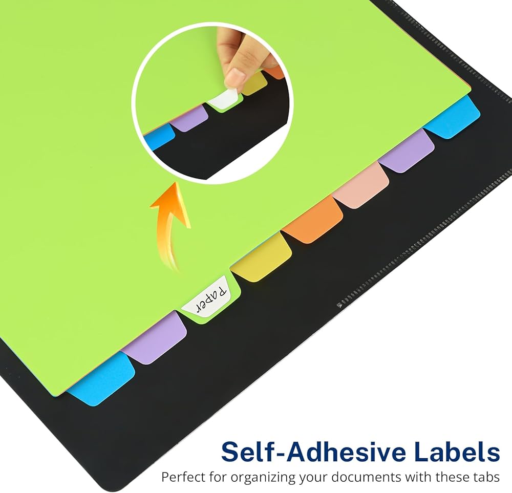 Package Includes: It includes 2 sets of dividers for 3 ring binder ,8 colors available,These binder dividers with tabs offer an effective solution for sorting and categorizing school projects and files.in addition, we offer you 24pieces self-adhesive customizable labels help you to label the dividers based on your needs.