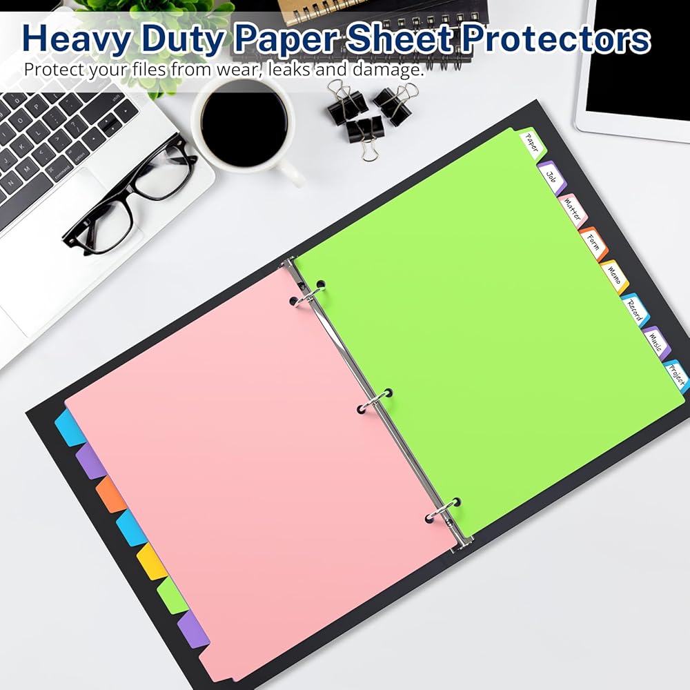 Heavy Duty Paper Sheet Protectors: Our binder sheet protectors are made of high-quality pp material that is sturdy and reusable. Heavy-duty sheet protectors are designed to protect your documents from wear and tear, spills and other forms of damage, ensuring their longevity and durability.