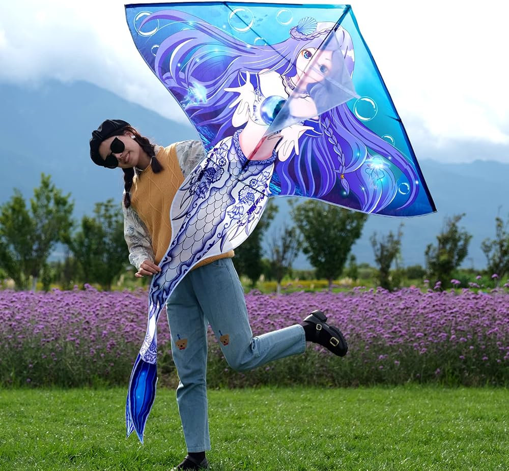 We designed this blue mermaid kite for new edition of 2022, is it the Arianna or Ariel in your mind? Pretty color, perfect fly performance, stronger frame, is there anything else could be more fun for your mermaid princess lover this Easter and summer?