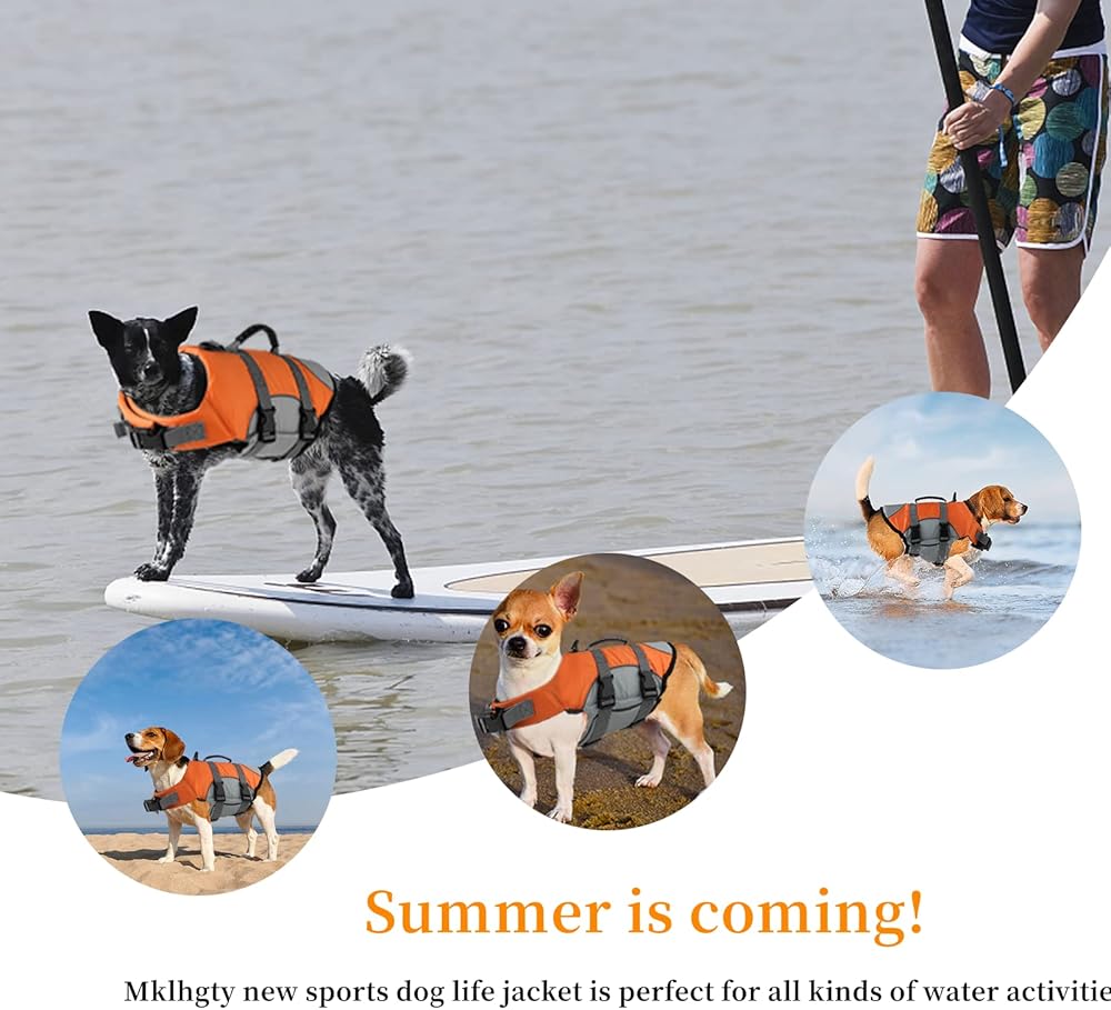 【NEW SPORTS STYLE】Mklhgty new sports dog life jacket is perfect for all kinds of water activities. Some dogs may take risks and run away from you when playing in the water, Mklhgty dog life jacket with bright colors and reflective strips can help you better notice your dog's position.