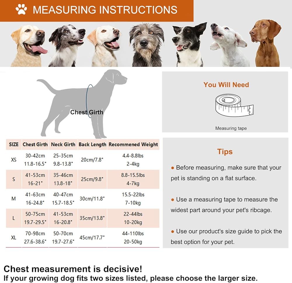 【EASY TO PUT ON AND TAKE OFF & ADJUSTABLE】Neck and chest all have adjustable velcro closure and adjustable buckle to make you easy to help your dog put on and take off, and create a most comfortable state for all breeds and body shapes.