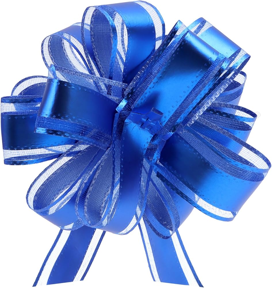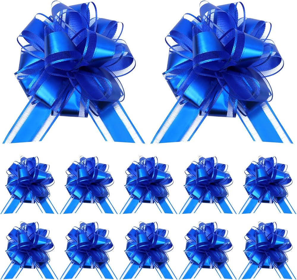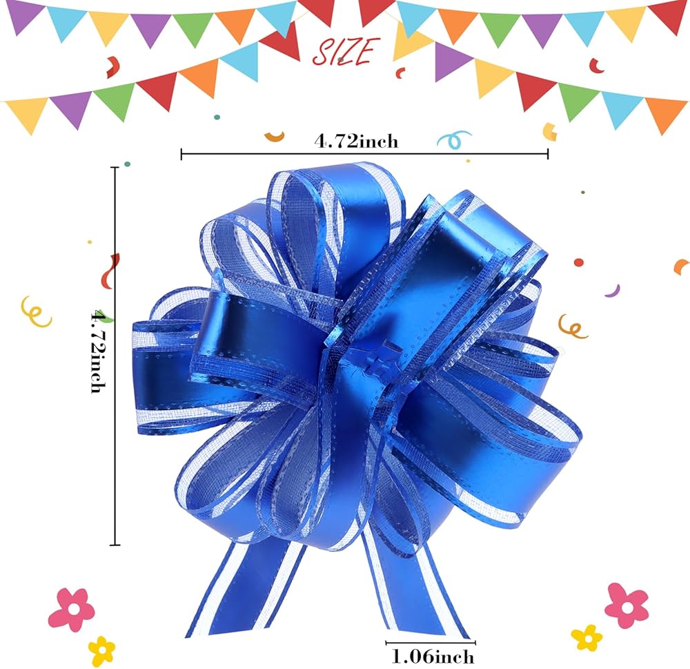 Uintoon 12Pcs Pull Bow Gift Wrapping Christmas Gift Bows Blue Ribbon Pull Flower Bows for Wedding Valentine's Day Party Birthdays Holidays Gift Wrapping Bows