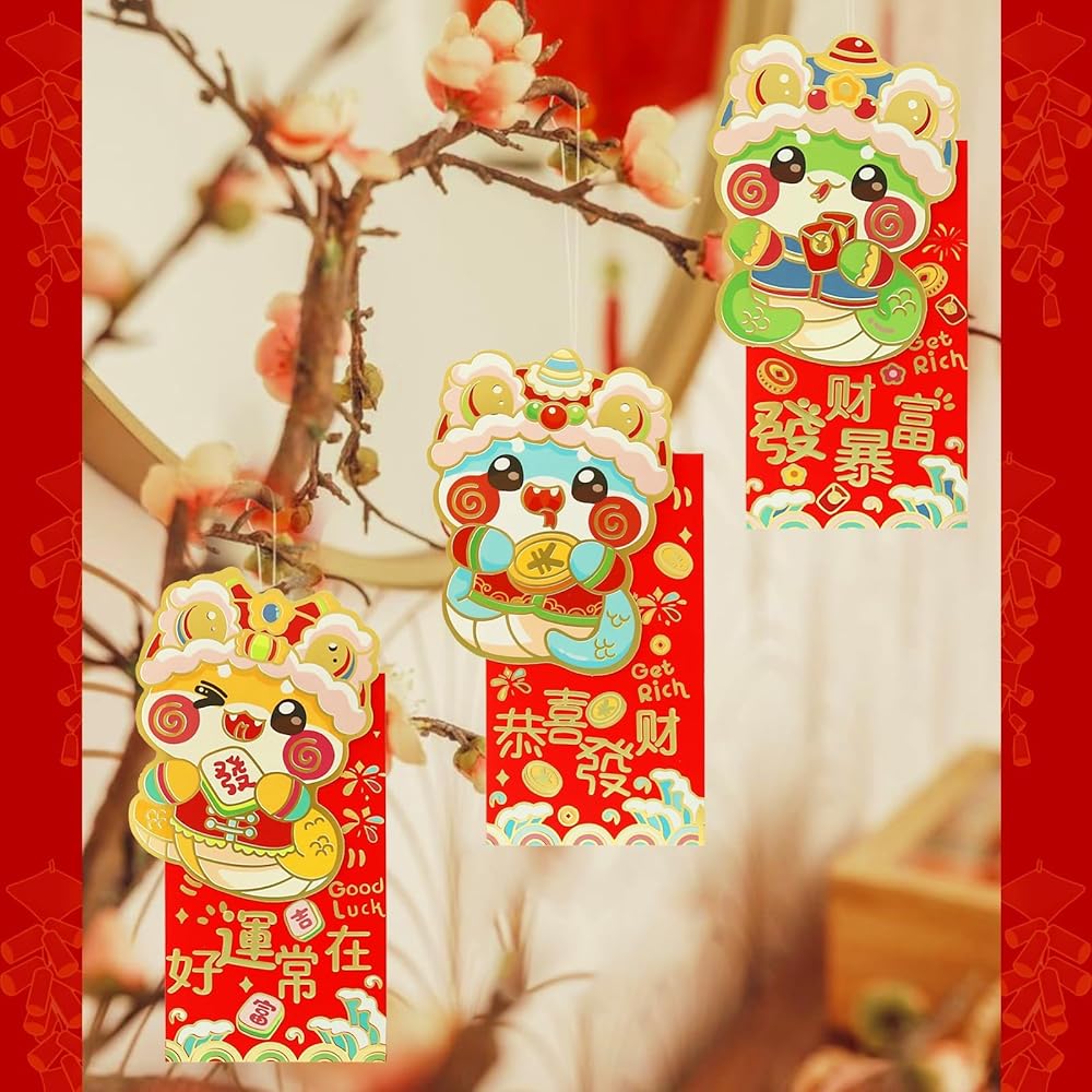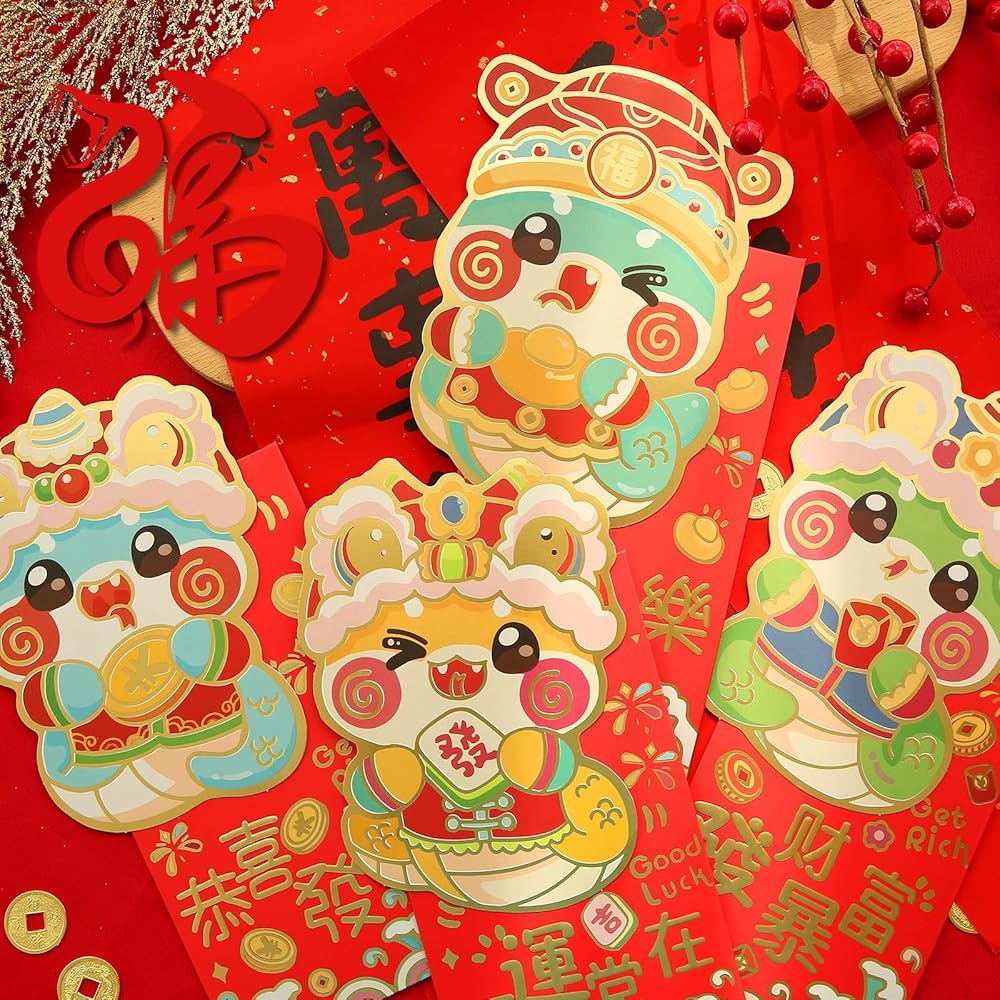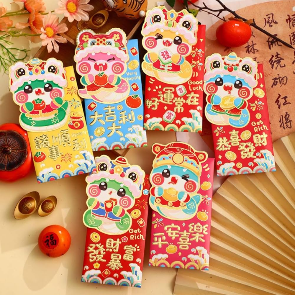 【Novel Design】The red envelopes are made with exquisite craftsmanship. The gold stamping pattern with bright and different colors makes the red pockets look sparkling and eye-catching. The New Year envelopes show the Chinese elements in cartoon style. The cartoon snake on the red envelope is vivid and cute, with Chinese blessings and small New Year patterns, this unique design can make the receiver feel happy and satisfied, and also feel the care and blessings from the giver.