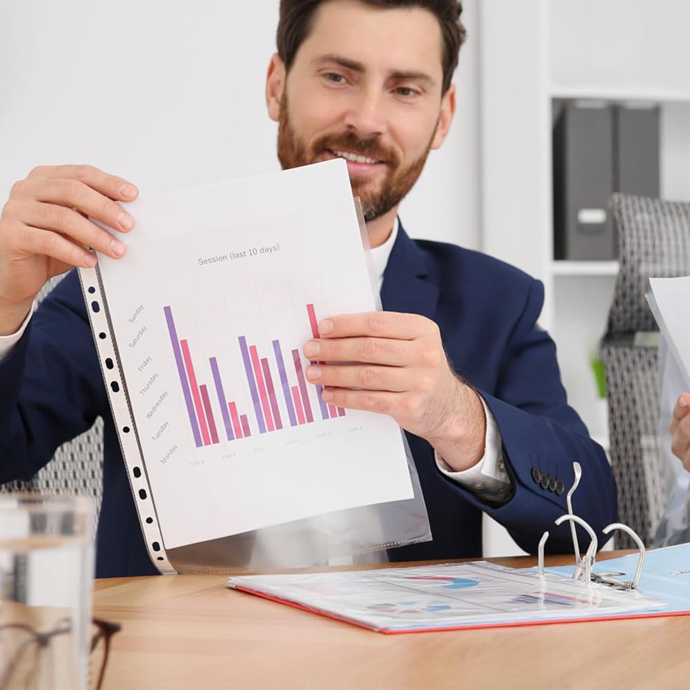 • Convenient Loading: Say goodbye to fiddly side openings; these sheet protectors open at the top for quick and effortless insertion or removal of papers.