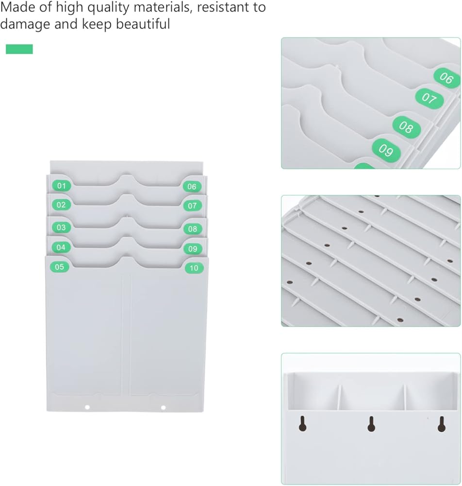 Plastic 10 Pockets Time Card Holder Wall Mount Technologies Time Card Rack Machine Attendance Recorder Punch Clock for Office, Light Gray