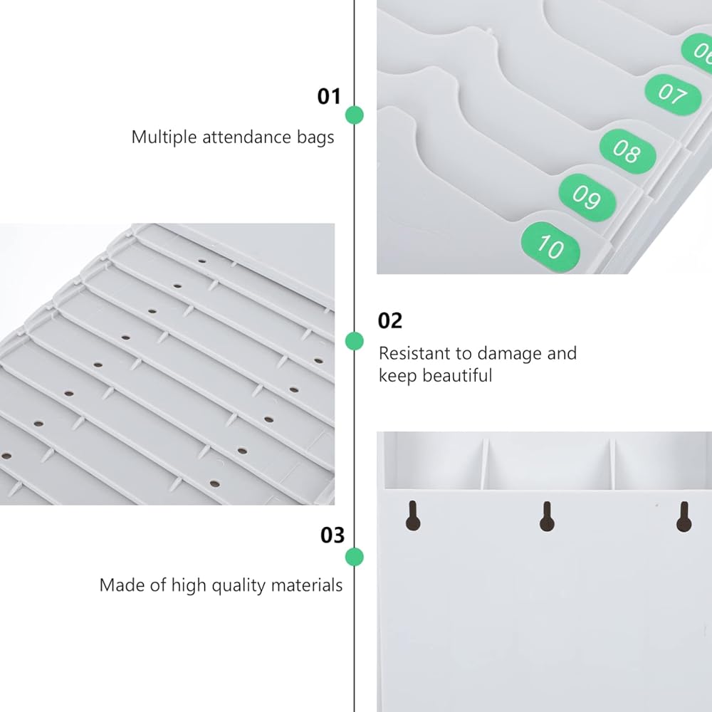 - Attendance Cards Holder, Equipped with screws and 2 holes on the back for easy wall mounting