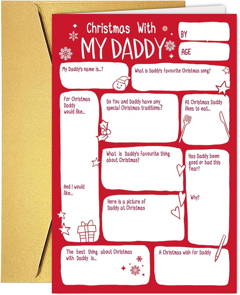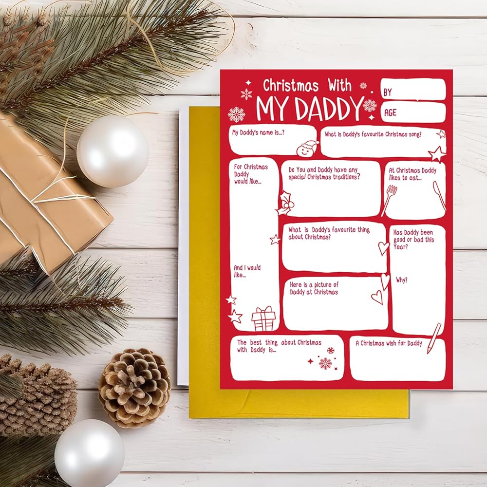 Cute DIY Daddy Christmas Card from Son Daughter Kids Toddler, Daddy Christmas Gift, Ideal Xmas Card for Father Stepfather, Unique Dad Holiday Card&Gift from Son Daughter Kids Toddler