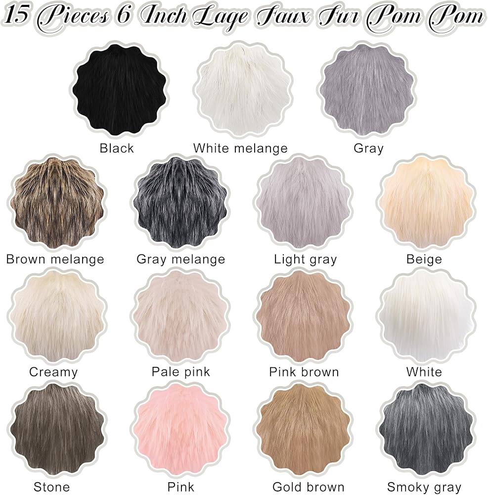 بوم بوم من الفرو الصناعي: تتضمن العبوة 15 قطعة من فراء الثعلب الصناعي في 15 لونًا، وكمية وفيرة وألوان بوم بوم مناسبة لك للاستخدام والاستبدال.