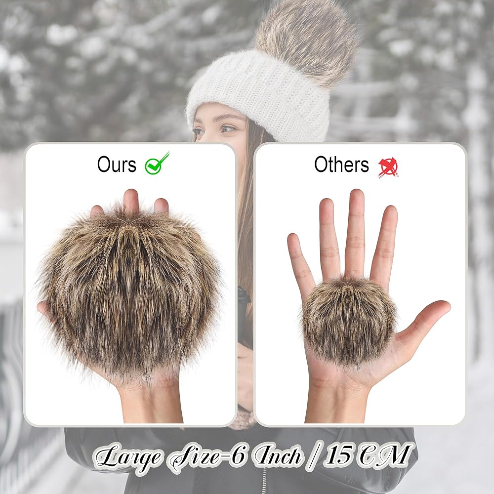 كرة بوم بوم كبيرة من الفرو الصناعي مقاس 6 بوصات: يبلغ قطر كرة بوم بوم المنفوشة 6 بوصات/15 سم، وهي أكبر من كرات بوم بوم العادية الأخرى. من الأفضل لمس هذه الكرات الكبيرة وأكثر جاذبية للأنظار، مما يجعل منتجاتك اليدوية أكثر روعة وفريدة من نوعها.