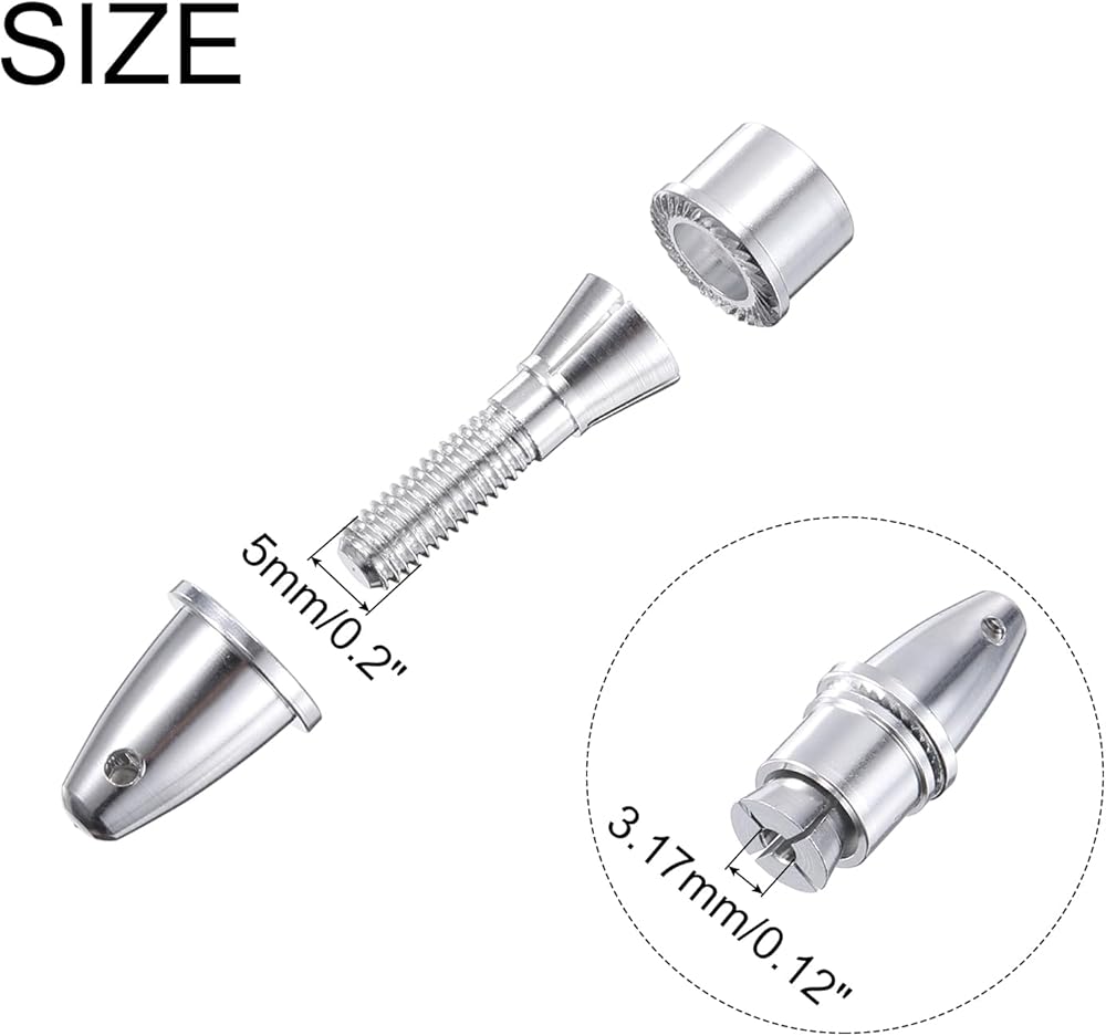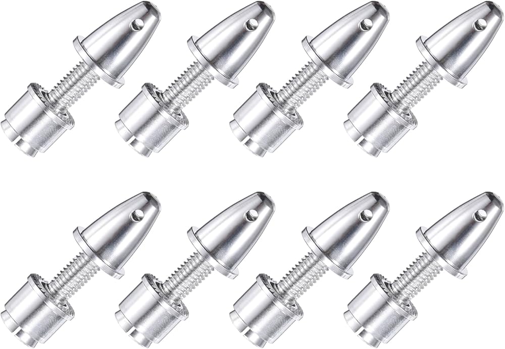 The RC Airplane Propeller Adapter, Size: 4mm(Aperture) x 6mm(Output Axle); Color: Silver; Material: Aluminum; In the Package: 8 Pack RC Airplane Spinner