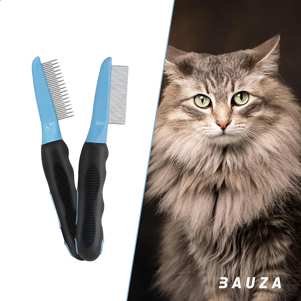 Pet Detangling Comb with Long and Short Stainless Steel Teeth to Remove Matt Hair, Knots and Tangles, Detangling Tool Accessories to Make Your Dogs and Cats Grooming Safely and Gentle