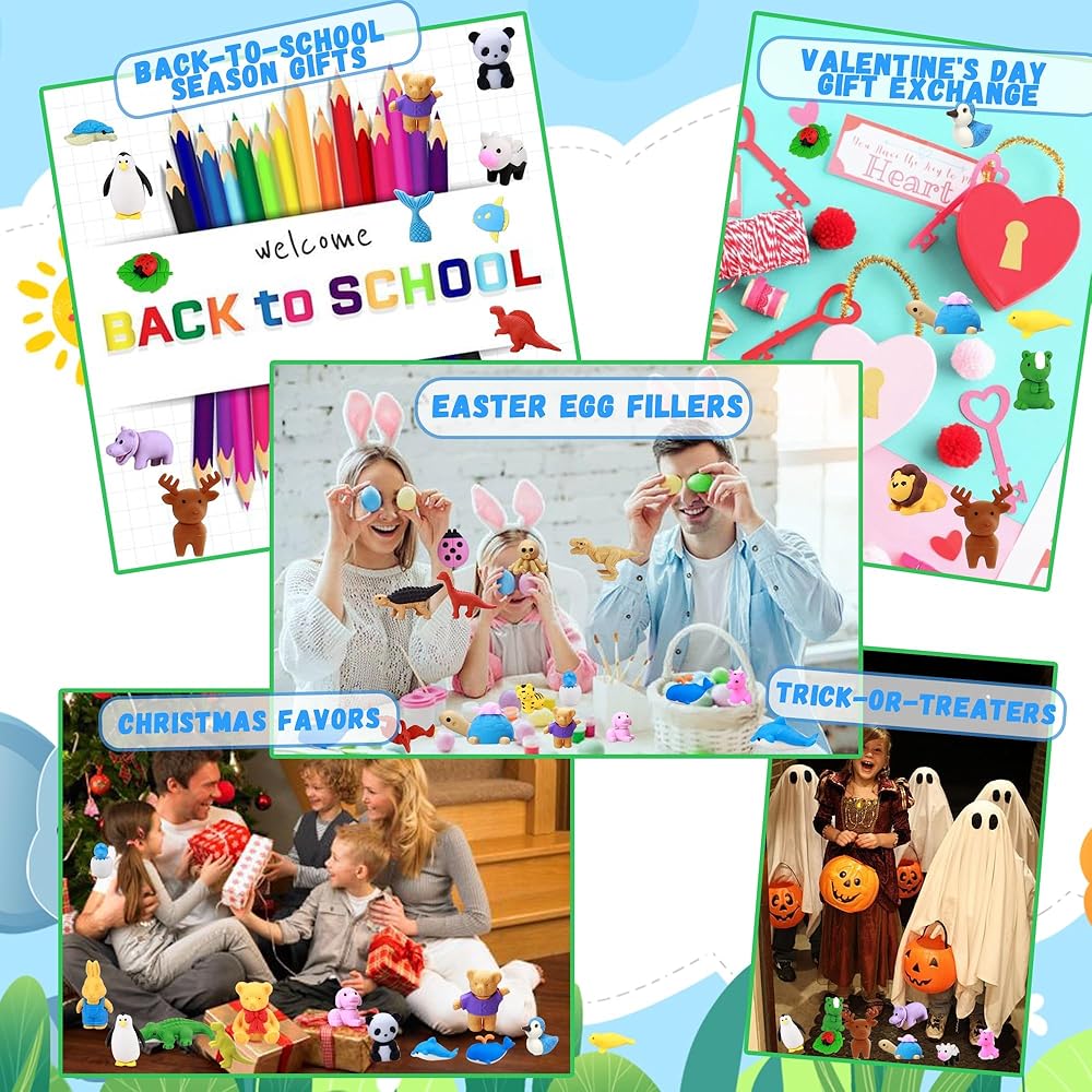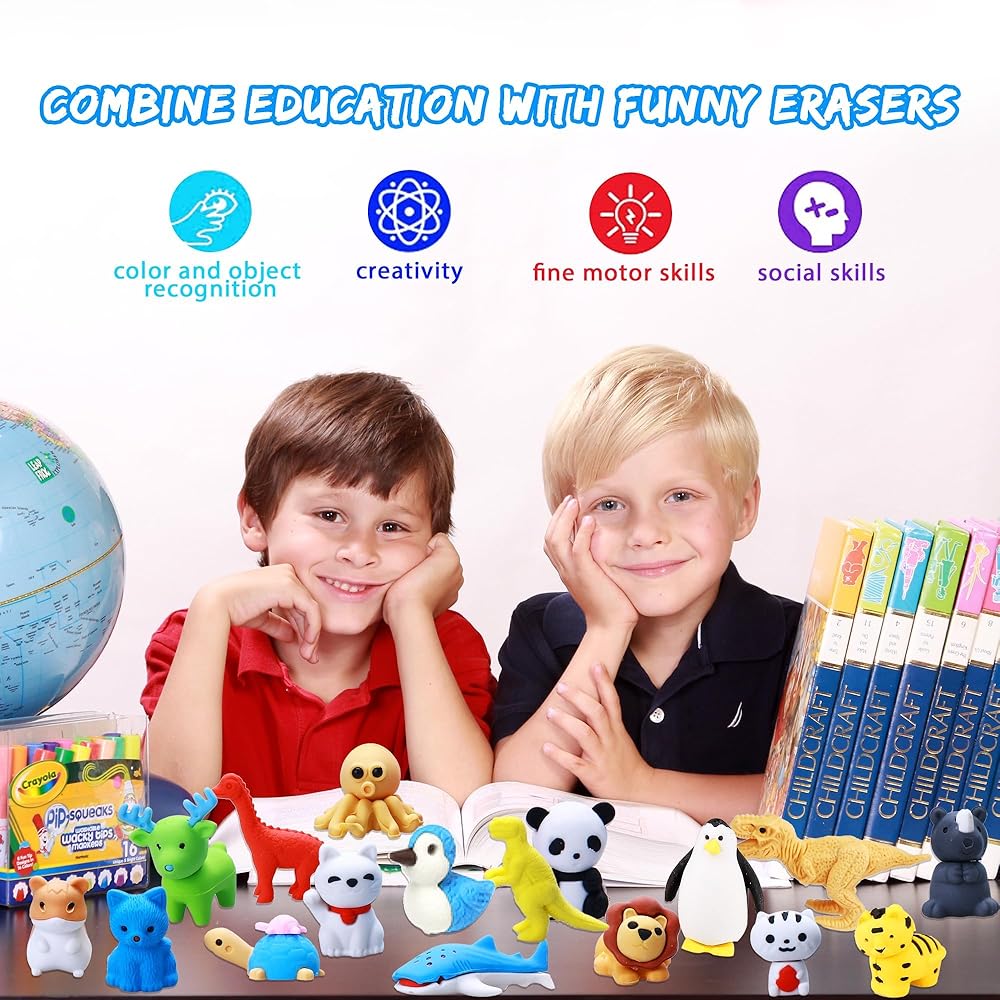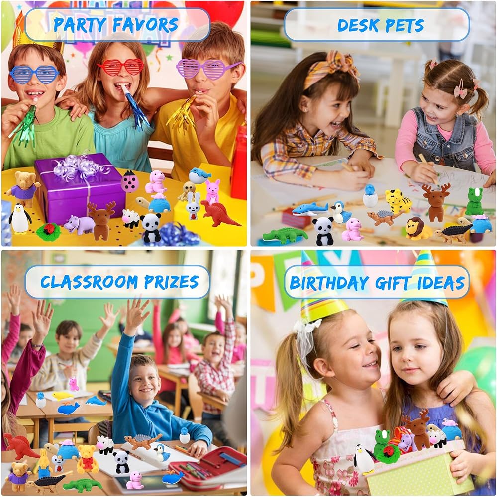 Combine Education With Funny Erasers: These fun erasers are not only school supplies, but also a source of joy for children, stimulating their love and interest in learning. With Animal Erasers, children can acquire knowledge and improve their learning efficiency in a relaxing and enjoyable atmosphere: Stimulate imagination, Improve practical ability, Practice calculations