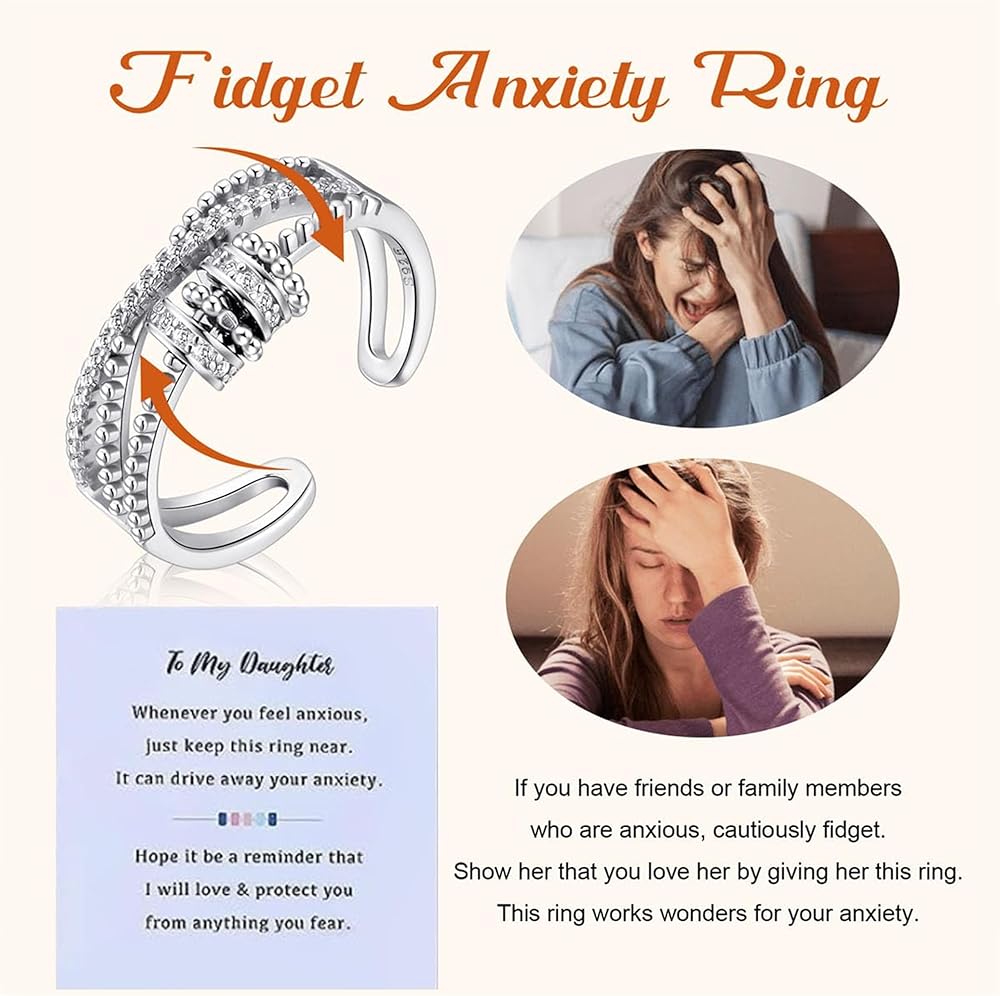 DAUGHTER GIFTS FROM MOM : Anxiety ring with round beads,with unique design it can help you relieve stress. When you feel irritable, bored and overwhelmed, try spinning the beads, it will make you feel relaxed and it has a calming effect on anxiety.