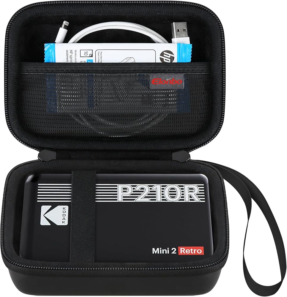 Elonbo Carrying Case for KODAK Mini 2 Retro 2x3 Portable Photo Printer, Color Instant Print Digital Camera Hard Travel Bag, Picture Printer Storage Holder, Pocket Fits Film Cartridge, Black