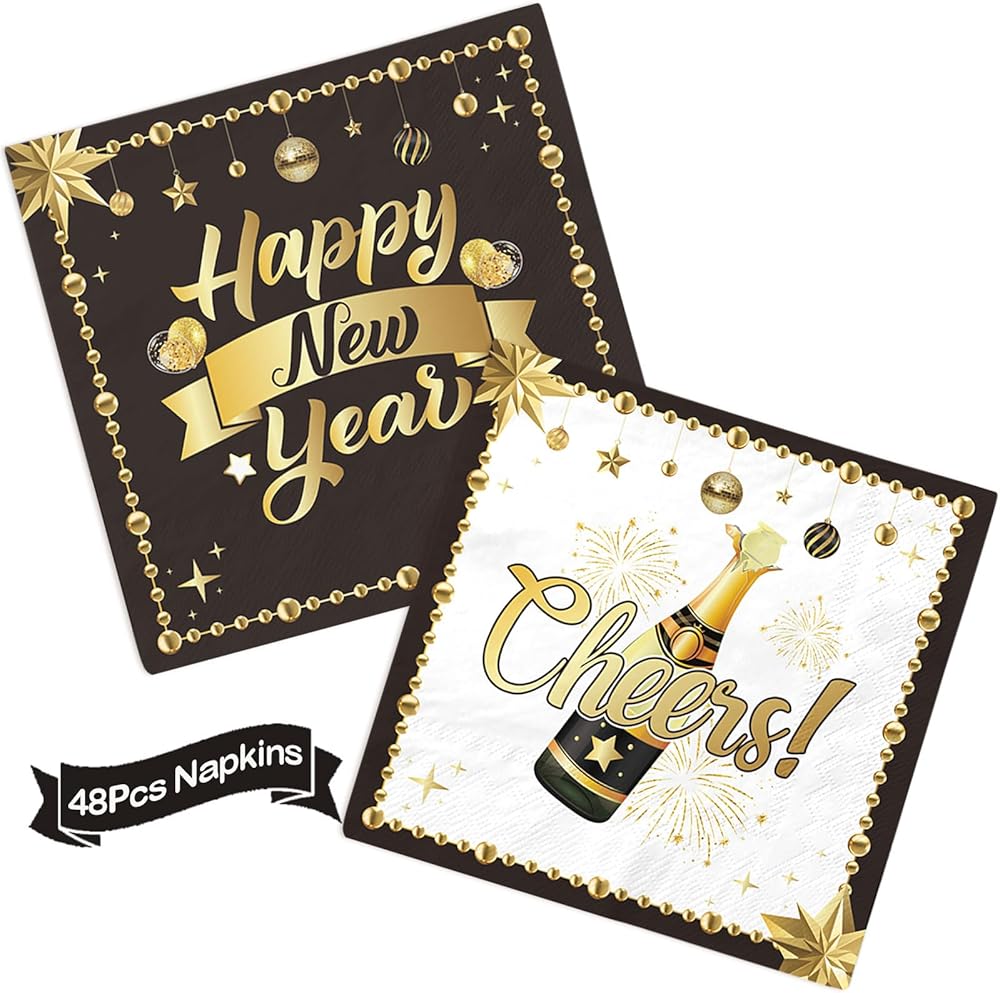 Include: You will get 48*new year napkins, there are a 2 design, each has 24pcs, which will add fun to happy new year themed party decorations.