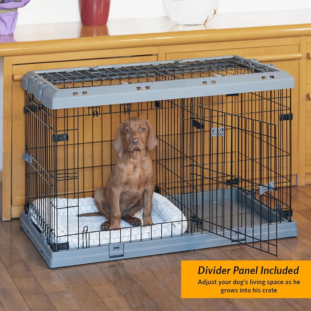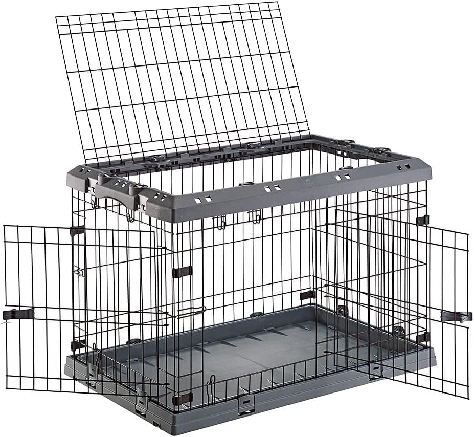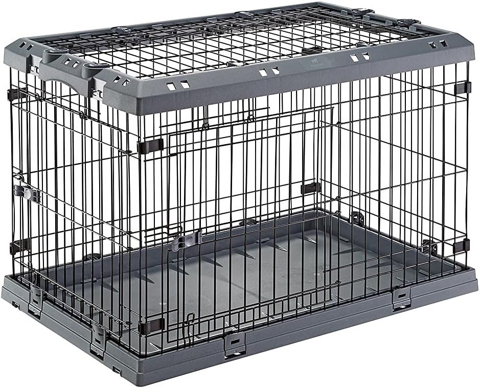 SUPERIOR hybrid dog crate is made with sturdy metal mesh; having reinforced doors that have double safety lock features; removable top panel for second convenient access
