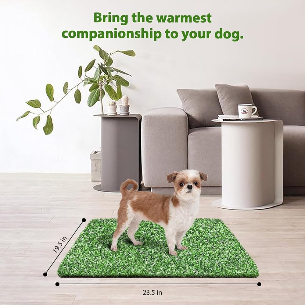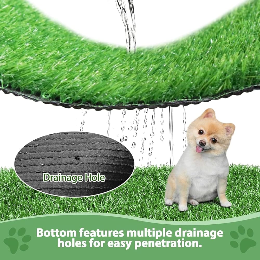[Grass Pad for Dogs]: 39.3 inches by 31.5 inches.Grass Mats have realistic colors, soft and dense grass silk, which looks like real lawn.It's friendly to Pet Potty Training.It has drainage holes at the bottom and is highly permeable to drain liquids quickly.Your dog will love our Fake Grass,let it at home can feel like a real outdoor lawn.