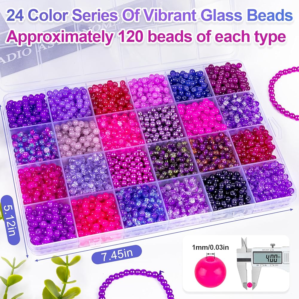 【Wide Applications】:The lovely glass beads for bracelets are very versatile. You can use them to make unique DIY crafts, such as bracelets, necklaces, earrings, cell phone pendants, key chains and more. Whether it is birthday, Christmas, Thanksgiving, or Valentine's Day, Mother's Day, friendship party, you can use them.These glass beads are stored in segregated plastic boxes by color for easy storage.