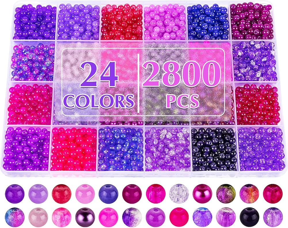 XSEINO About 2800 PCS 4mm Glass Beads Bracelet Making Kit,24 Assorted Violet Elegant Series Colorful Crystal Beads for Bracelet and Jewelry Making and DIY Crafts,Friendship Bracelets
