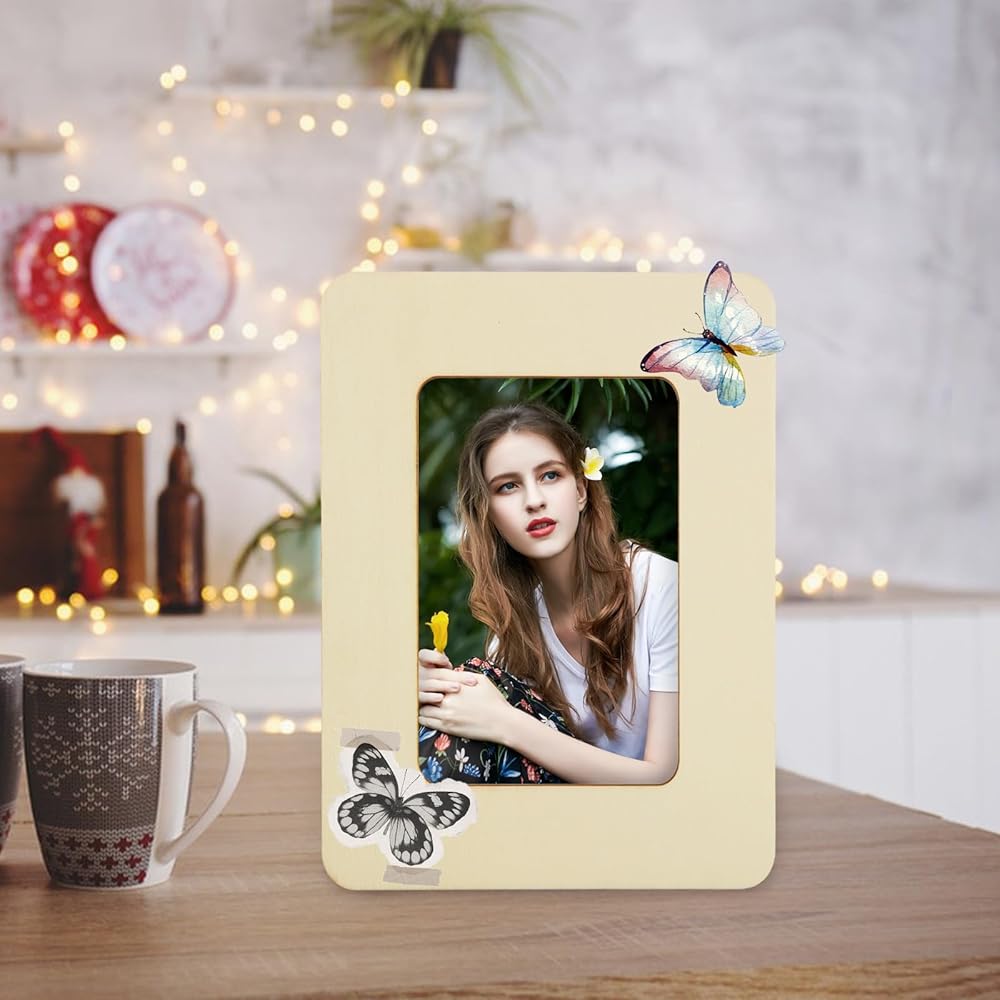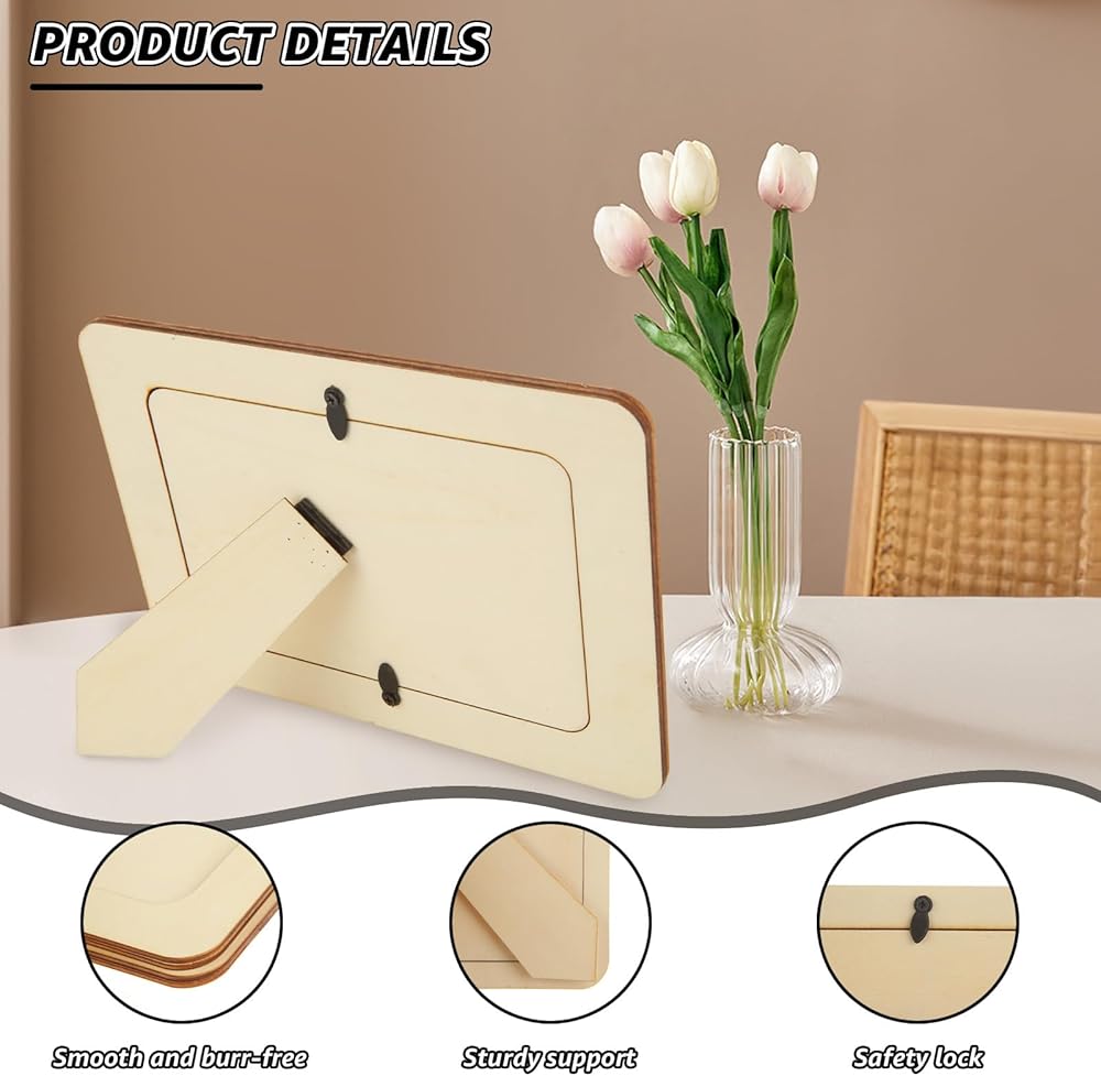 -The surface of the 4x6 picture frame wood is blank and you can customize the frame with stickers, gems, glitter, watercolor, oil paintings, illustrations and more to personalize it.