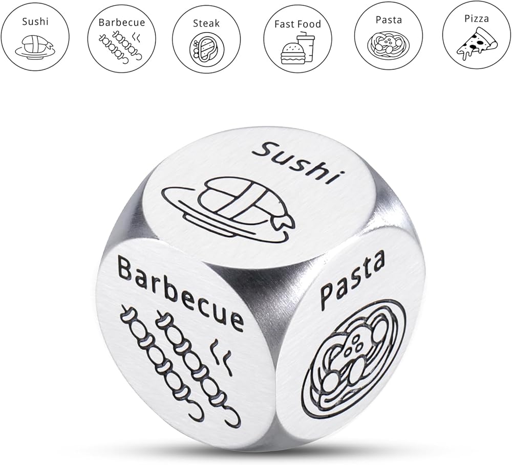 Boyfriend Birthday Valentines Christmas Gifts: Weird dices with 6 kinds of foods to choose, has a good quality and can always bring different suprise. It is elegant as birthday gift, 11 year love gifts, to have a romantice date night. Add some little surprise for life on Christmas, 1th anniversary day, birthday, sweetest day, Valentine's day, birthday boyfriend gifts, husband birthday gifts for men, father's day gifts for boyfriend.