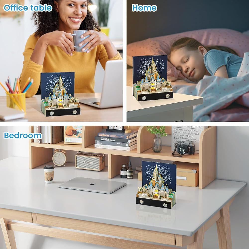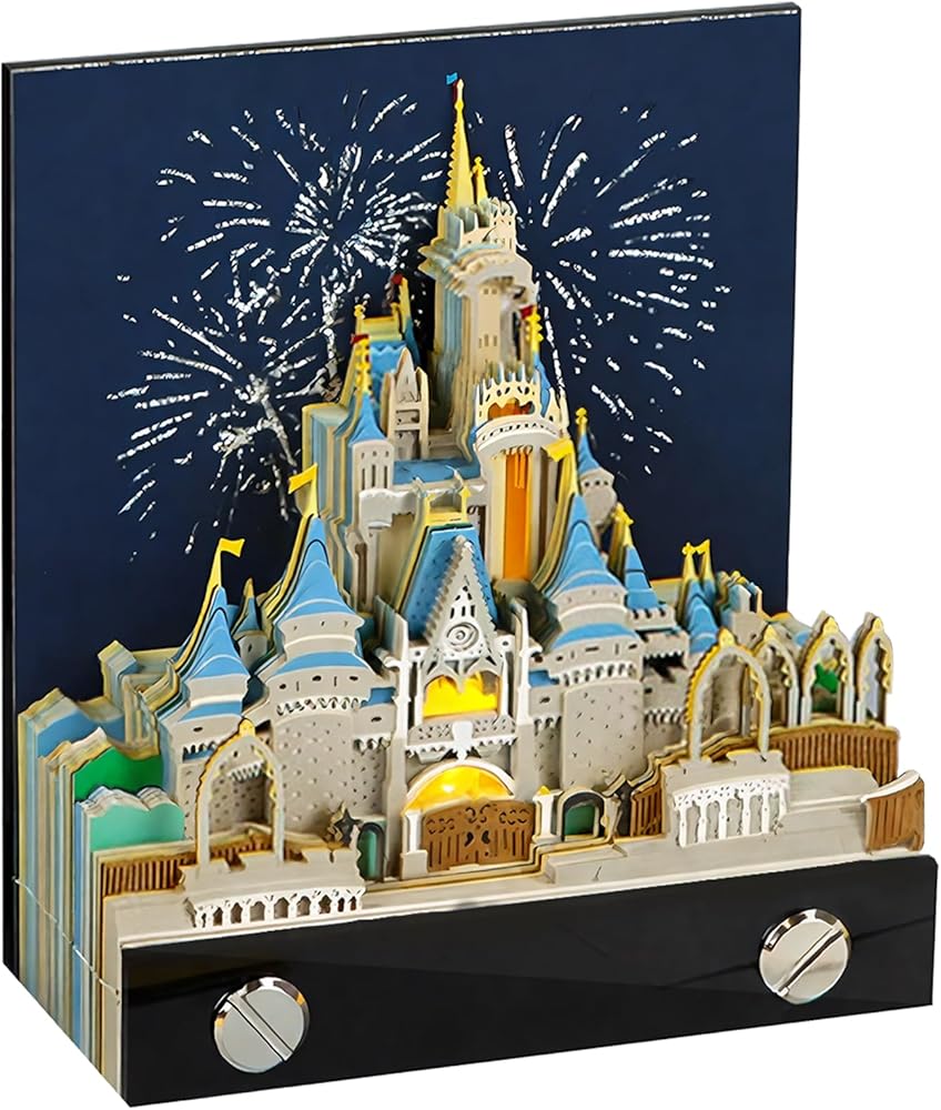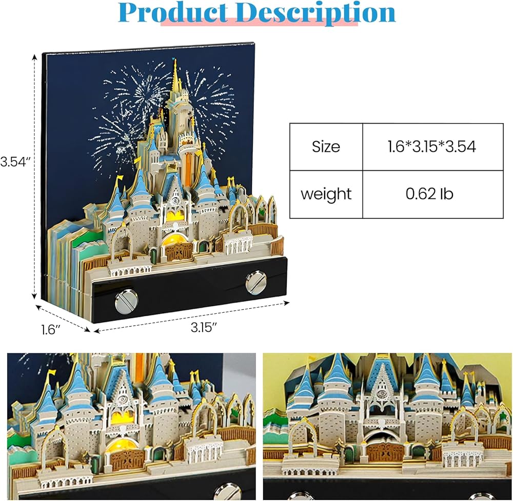 Time Piece Calendar 2026, 3D Sticky Notes 2026, Magic Castle with Weekly Calendar & LED Lights, 3D Memo Pad Art Sticky Notes, Gift for Christmas Housewarming Desktop Decoration
