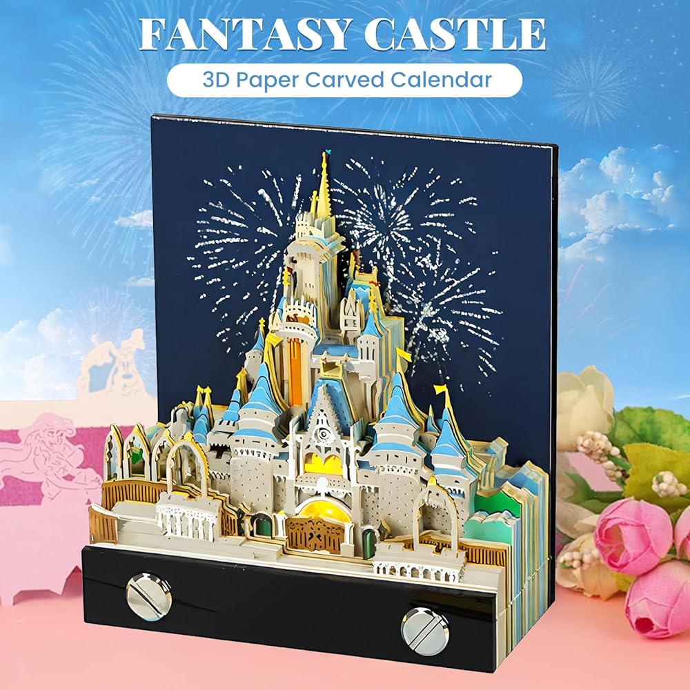 Exquisite Craftsmanship: Crafted from premium specialty paper, this calendar features intricate carving techniques and vibrant multi-colored decorations. The beautiful artsy pads are designed to captivate, It comes with an acrylic protective case that doubles as a practical base, keeping dust at bay.