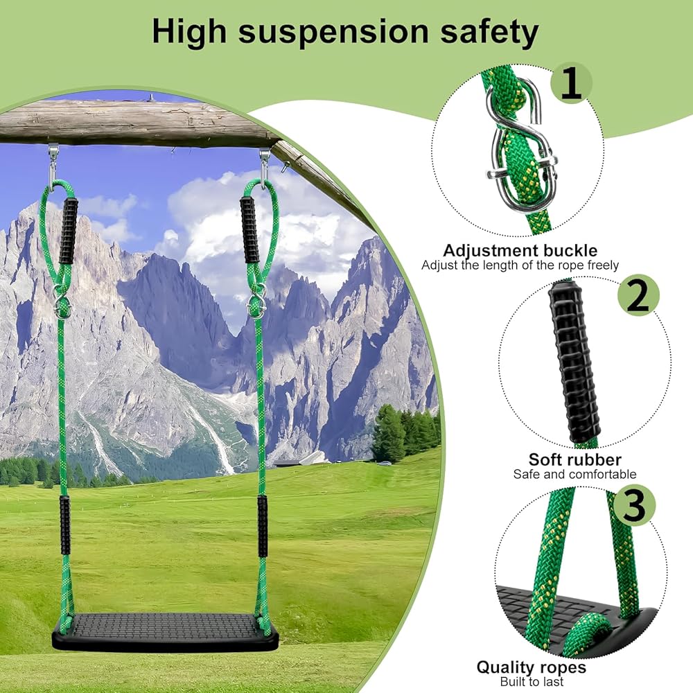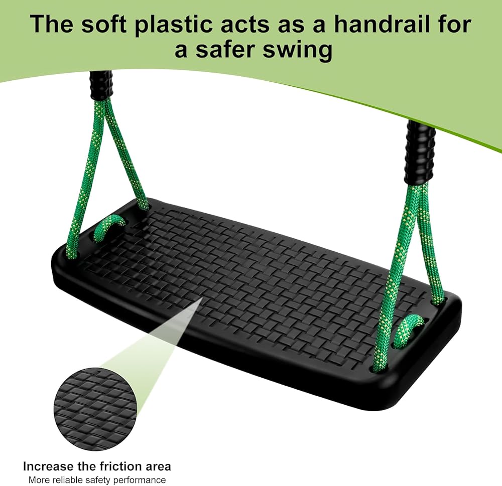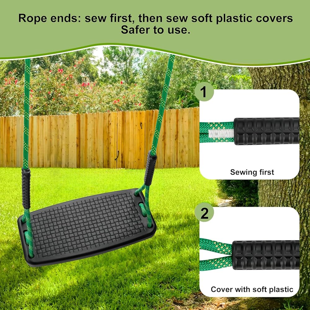 HIGH QUALITY SWING SET: A good swing set eliminates the need for you to replace the swing seat frequently! The base we upgraded thickened plastic, not easy to break. The end of the rope is sewn and then put on the soft rubber process, from the details of the attention to your children's safety when playing.