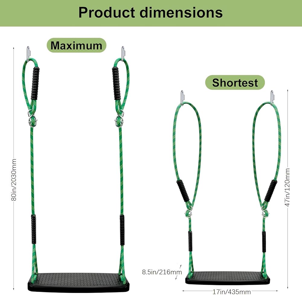 FEATURED DESIGN: The rope is adjustable up to 80 inches. Flexible to adapt to various scenarios. The black rubber part will not rub your hand when you use it to grip on the swing, because it is soft rubber to protect children's tender skin.
