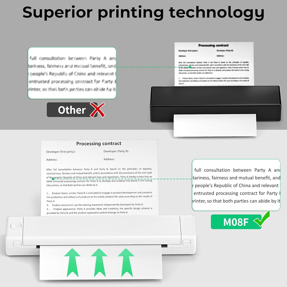 Efficient Inkless Printing: Using advanced thermal technology, M08F inkless printer eliminates the need for ink, toner, or ribbons. And this no ink printer is designed to work with thermal paper, providing a cost-effective and efficient solution for on-the-move printing