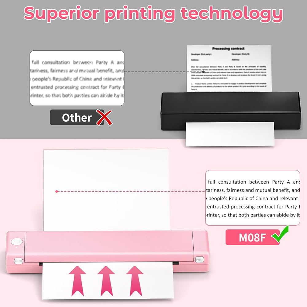 Efficient Inkless Printing: Using advanced thermal technology, M08F inkless printer eliminates the need for ink, toner, or ribbons. And this no ink printer is designed to work with thermal paper, providing a cost-effective and efficient solution for on-the-move printing