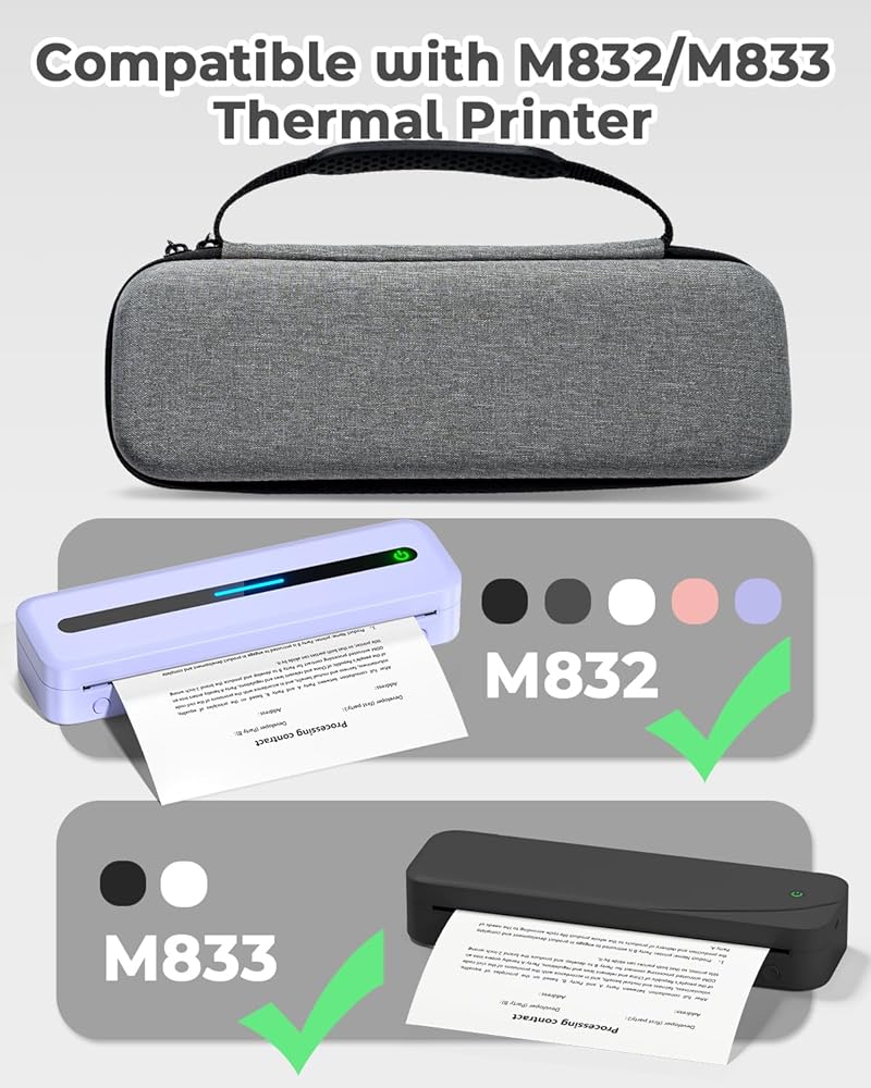 Fit for Your Portable Thermal Printers: Specifically designed to accommodate M832, M833, M834 or M835 portable printer, its dimensions of 10.62" x 3.54" x 3.54" externally and 10.43'' x 2.92'' x 3.14'' internally ensure a snug and secure fit. This bag offers ultimate protection during storage and transportation
