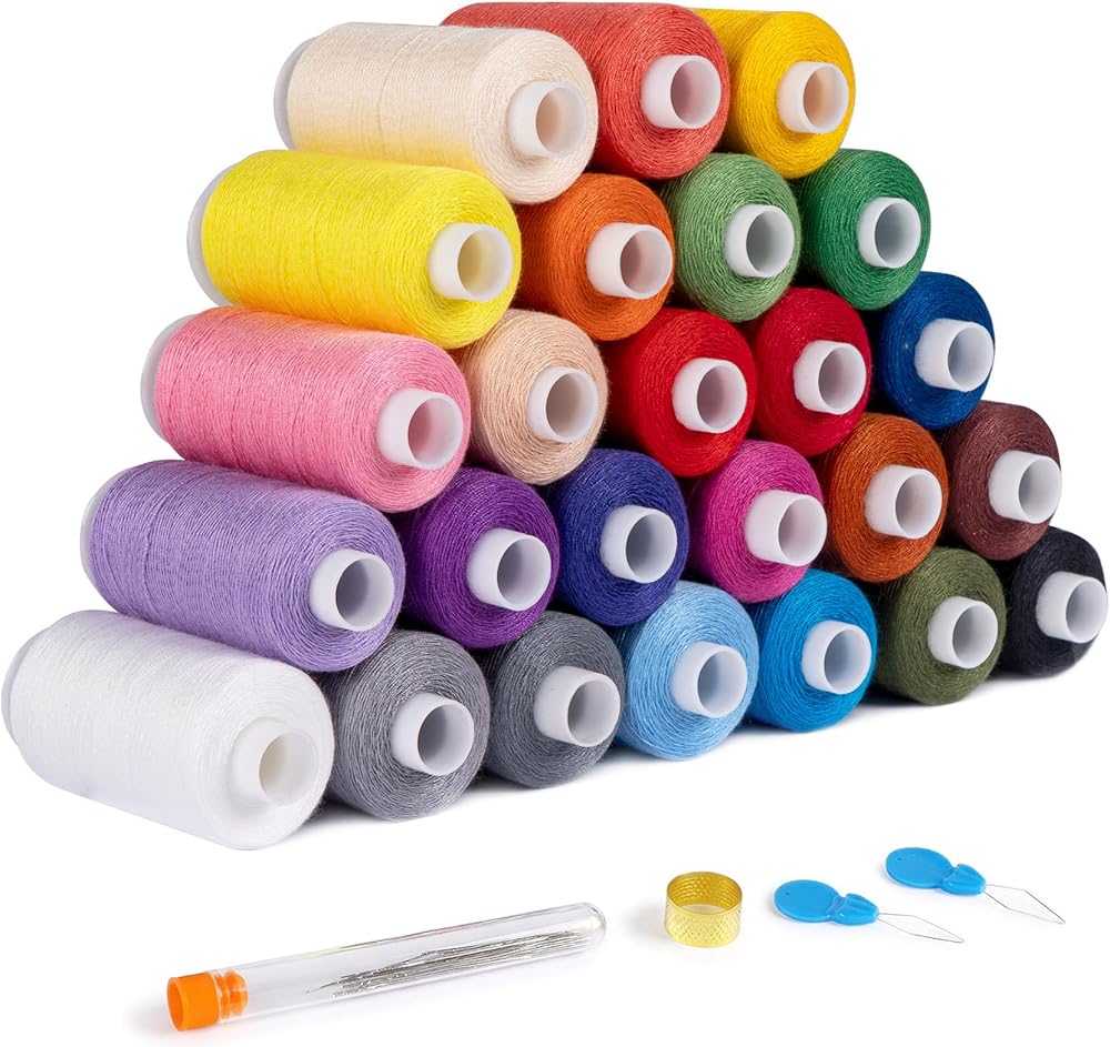 ilauke Sewing Threads for Sewing Machine and Hand Stitching, 800 Yard 40S/2 Serger Quilting 25 Colors All Purpose Polyester Thread Spools with 10 Needle,Thimble for Universal Sewing Machines Use