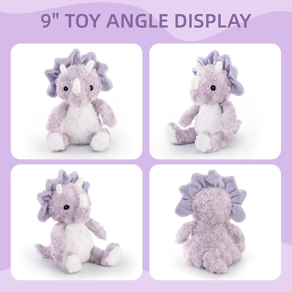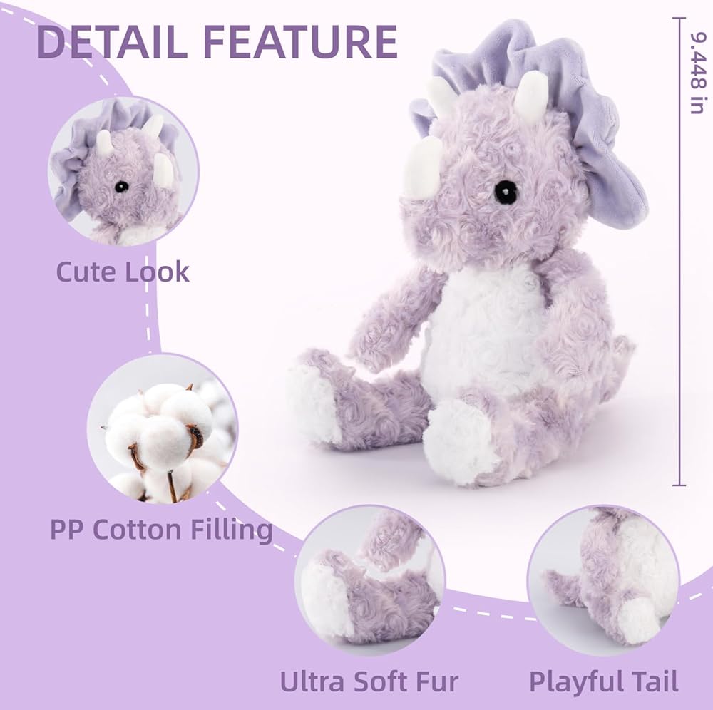 Popular Dinosaur Party Favors: We focus on making children unique and warm furry playmate; The lavender triceratops stuffed shape is super adorable, just like a cute baby, conduciving to stimulating children's rich imagination and creativity