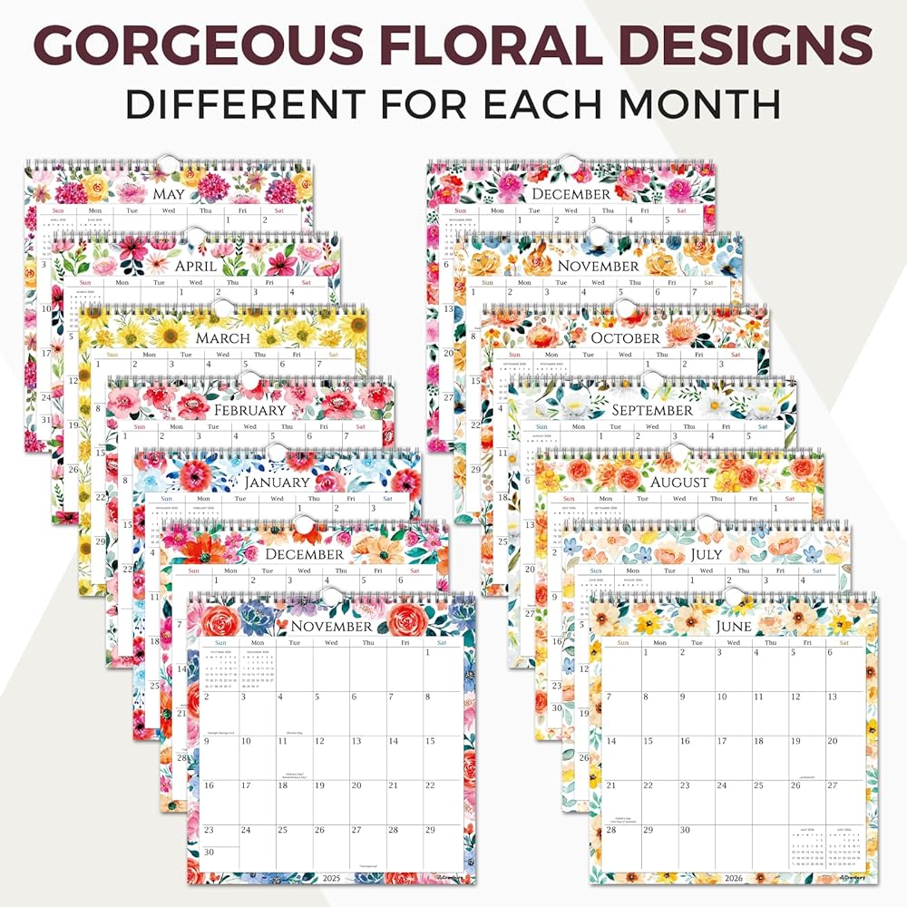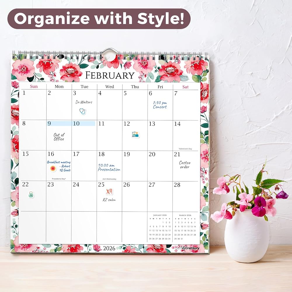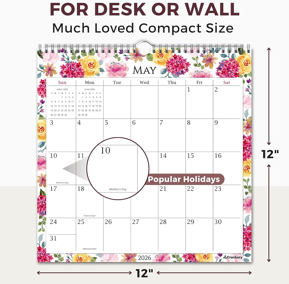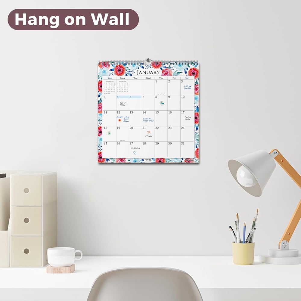 Premium Quality: Large square calendar with durable twin wire spiral binding and hanger. Non-glossy paper for easy writing. High quality thick paper prevents ink bleed-through.
