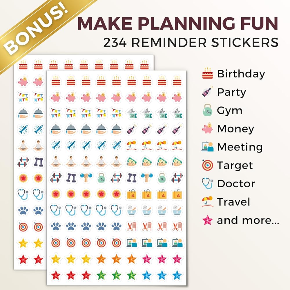Include Stickers: Set of 234 stickers, 22 reminder designs, includes Birthday, Celebration, Appointments, and more! Perfect for year round planning. Great gift for busy parents, students, seniors, or friends.