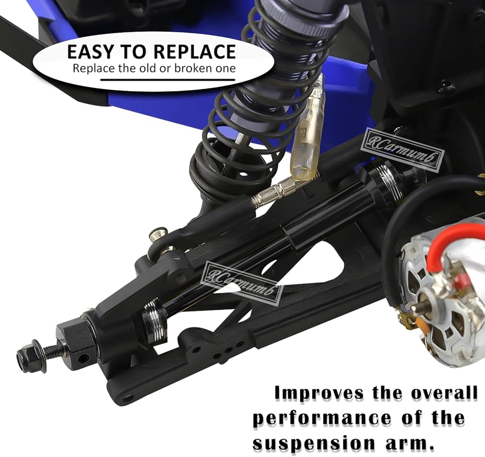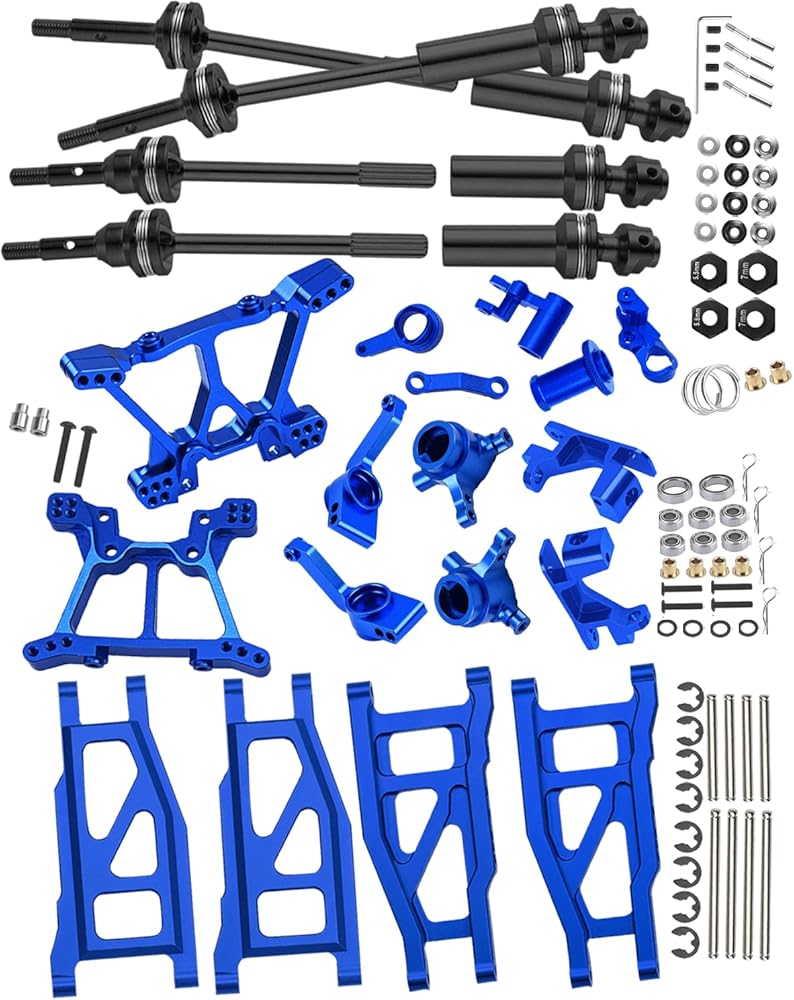 【High-quality Material】: The Suspension Arm,Drive shaft,Caster Block,Steering Blocks,Rear Stub Axle Carriers,Steering Block,Shock Tower Set are anodized aluminum, precision CNC machined, lightweight and durable, increasing crash resistance and long-lasting durability.